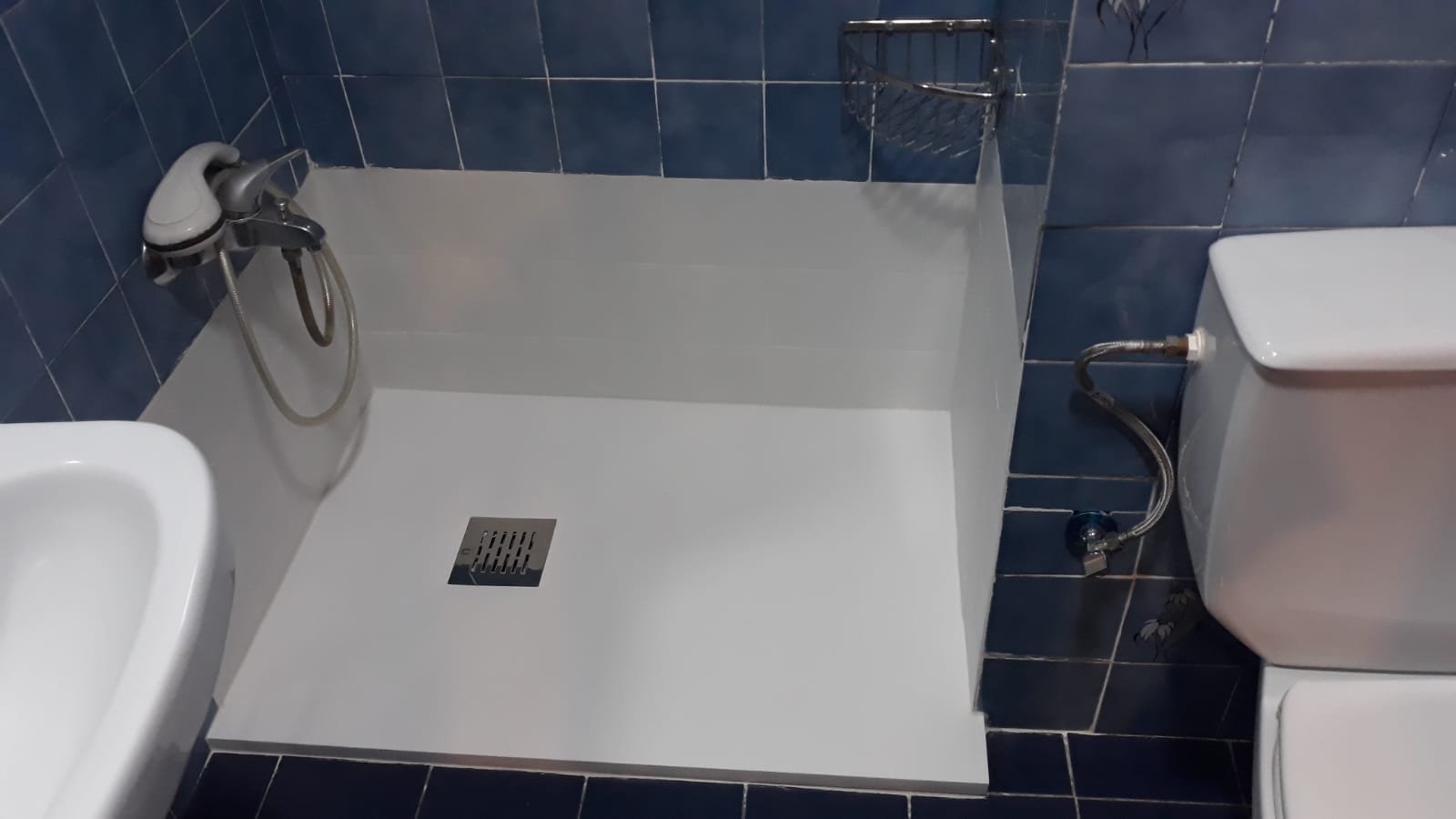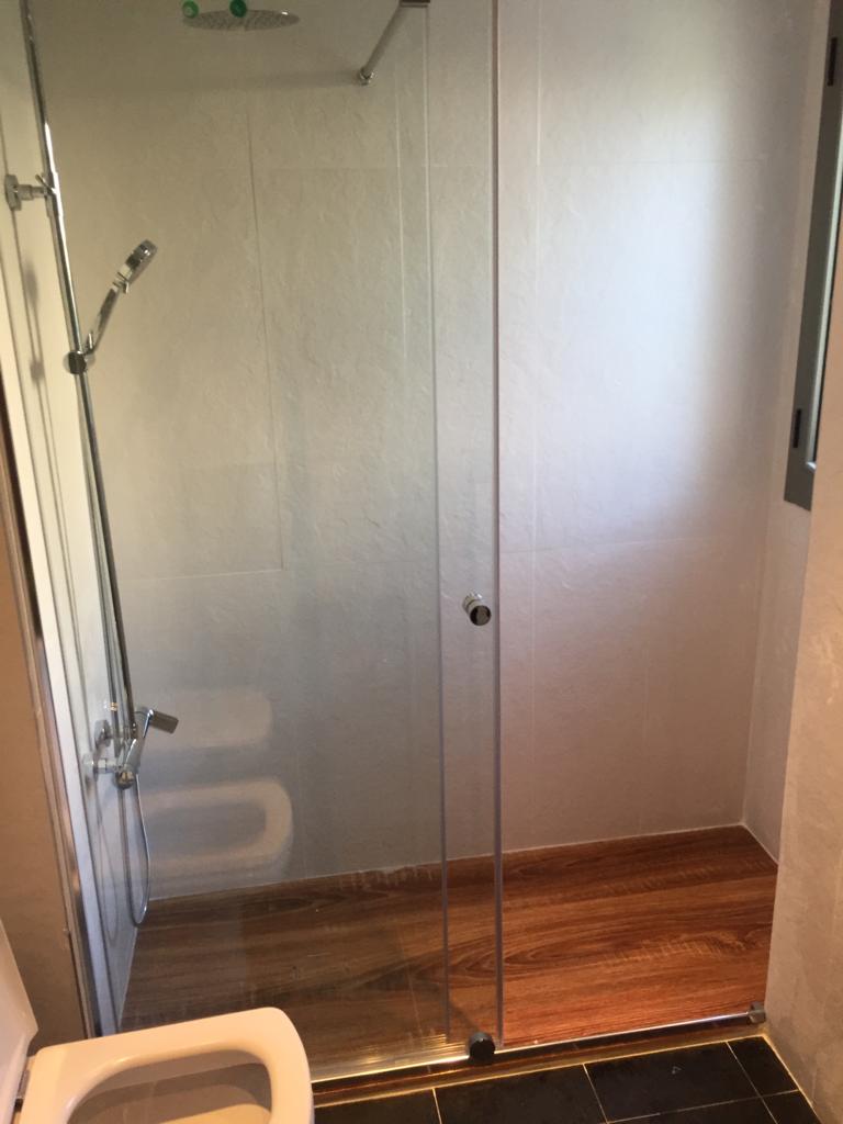 En este trabajo en concreto, el cliente no quería poner mampara, ya que lo más importante era poder acceder bien a la ducha sin tener problemas de entrada, el baño no era muy grande, por lo tanto, esta opción tampoco era mala, ya que con una pequeña cortina se puede duchar sin tirar el agua fuera, aunque lo más práctico siempre es poner una mampara de baño.