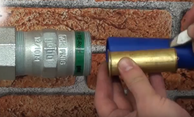 Posteriormente se pone la tuerca y se enrosca con una llave inglesa o llave dinamométrica con la pieza que une el hierro galvanizado con el tubo de plástico, polibutileno o monocapa, las tres formas que se suelen llamar a este tipo de tuberías, si queréis para no estar repitiendo, diremos tuberías de plástico que es como los usuarios las conocen, ya que polibutileno y monocapa son nombres más técnicos de la jerga de fontanería.